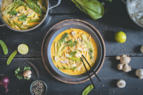 Kokos-Limetten-Suppe mit Pak Choi & Reisnudeln