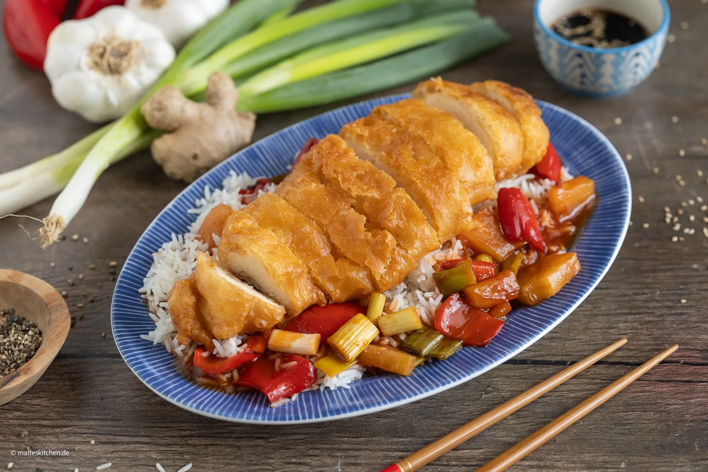 Gebackenes Hähnchen auf chinesische Art | süß-sauer